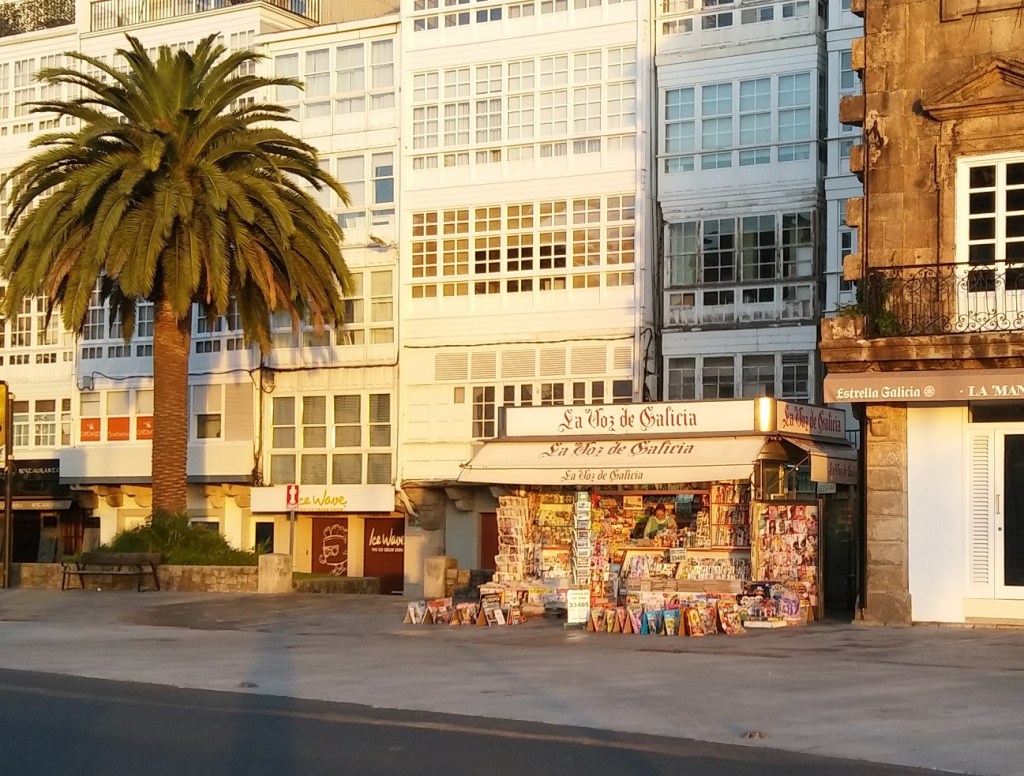 Die große Hafenstadt verfügt über eine riesige Uferpromenade, gesäumt von diesen hohen Gebäuden mit weiß verglasten Balkonen, die hier regiontypisch zu sein scheinen. A Coruna ist groß, aber nicht riesig; In der Innenstadt findet man zahlreiche Cafes, Restaurants und Läden, das Ganze ist aber nicht so touristisch wie andere spanische Großstädte. Die Nordregion Spaniens scheint einigermaßen wohlhabend zu sein.