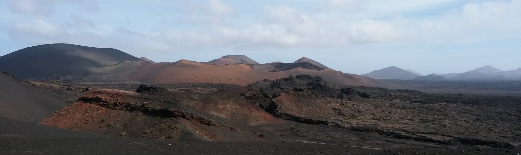 Gut kommen wir gleich zu den Gegenaspekten. Ich bin auf einem Kamel geritten (Armes Tier, aber Bucket-List, Kamelritt, abgehakt) und der Vulkanische Nationalpark ist beeindruckend. Der Anfang allerdings ist schwer. Man steht vor einer Abzweigung mit Schranke, bezahlt 10 Euro pro Nase und steht dann erst einmal 30 Minuten im Stau. 10 Autos werden herausgelassen, 10 Autos fahren in den Nationalpark hinein, das heißt nein, sie fahren zum Busparkplatz mit Restaurant. Dort wird die ganze Kundschaft effektiv in Reisebusse verfrachtet und dann 40 Minuten im Kreis durch die Krater und Lavafelder gefahren. Dazu dröhnt in Spanisch, Englisch und Deutsch mehr oder weniger spannende Information aus Lautsprechern. Na gut, das meiste davon fand ich ganz interessant und wissenswert. Die sichtbare Gewalt der Erdkräfte in dem Vulkanfeld erzeugt ein gewisses Gefühl der Ehrfurcht. Nichts, was wir können, kann diese Gewalten beeinflussen, wenn sie sich irgendwo auf der Welt die Bahn brechen. Zwischendurch läuft Mozarts Requiem und bei der Einfahrt auf den Autoparkplatz „Also sprach Zaratustra.“