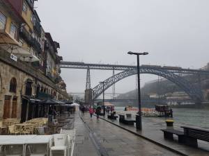 Unser letzter Startpunkt Porto ist nebenbei ein kleiner Geheimtipp. Die zweitgrößte Stadt Portugals, Namensgeberin des berühmten Portweins, liegt an einem Flusslauf des Meeres und zieht sich ein steiles Flusstal hoch. Links und rechts liegen alte Kais, an denen früher der Handel blühte. Eine spektakuläre Eisenbahnbrücke von niemand geringerem als Gustav Eifel verbindet die beiden Seiten, unten für Fußgänger und Autos, hoch oben für Züge. Auch eine Gondel führt über den Fluss, ein bisschen wirkt Porto bei Nacht wie ein Streampunk-Setting. An den alten Kais tobt Abends das Leben, eigentlich würde ich da gerne noch mal in Ruhe hin.