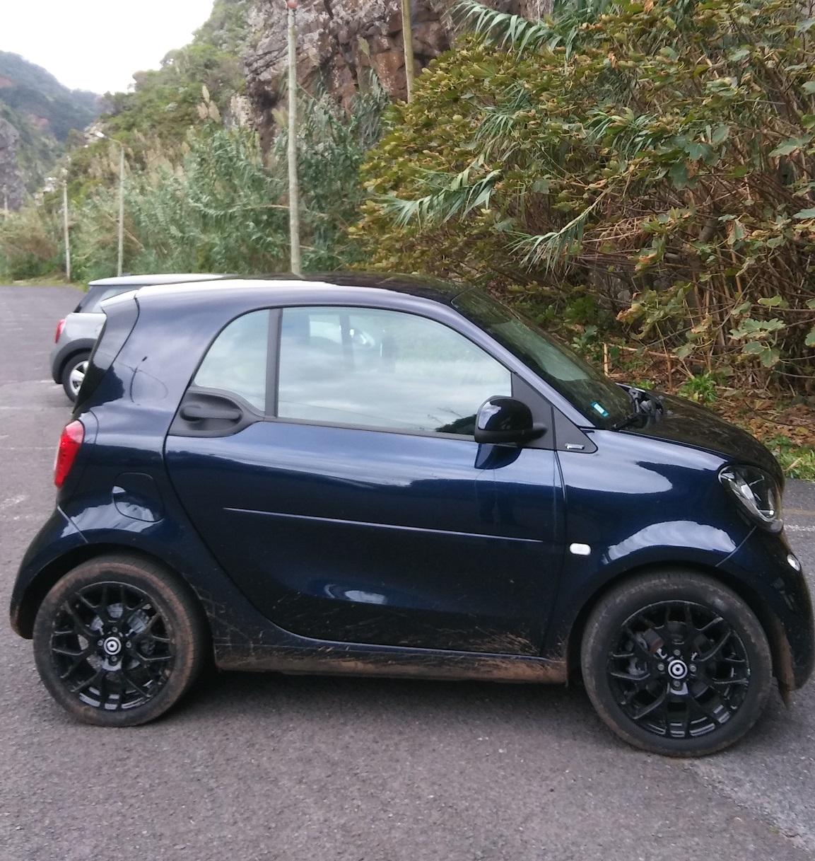 Die von mir am nächsten morgen gemietete Rennsemmel, ein Smart mit viel Motor, hätte kaum größer sein dürfen für diese Sträßchen und braucht auch jedes PS. Madeira ist ein im Meer versenktes Gebirge (nicht ganz korrekt, aber als Bild nützlich). Von der Küste geht es steil bergauf bis auf 1800 Meter. Und jeder Meter ist anders. Und überraschend. Und großartig.