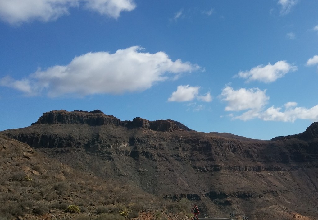 Eigentlich dachte ich, es sei eine gute Idee mit dem Wagen die berühmten Dünen von Maspalomas anzusehen, vielleicht mit nackten Füßen über einen Sandstrand laufen oder die Zehen in die Brandung stellen. Aber hier klebt ein synthetisches Großhotel neben dem anderen, die Zwischenräume hat man mit baugleichen Ferienwohnungen aufgefüllt. Bei den Hotels muss die Anweisung für die Architekt*in folgende gewesen sein: „Soll aussehen wie Las Vegas, nur viel kleiner, ok?“ Ich bin nicht in der Lage, einen Parkplatz in Strandnähe zu ergattern, man muss beim Fahren höllisch aufpassen, weil sich Reisebusse durch enge spanische Sträßchen quetschen („Nur viel kleiner, hörst du?„) und Scharen von hässlichen alten Männern in Unterhemd und Goldkettchen zwischen den geparkten Fahrzeugen hervorschießen. Entnervt gebe ich auf. Ich will in die Berge, weg vom Massentourismus.