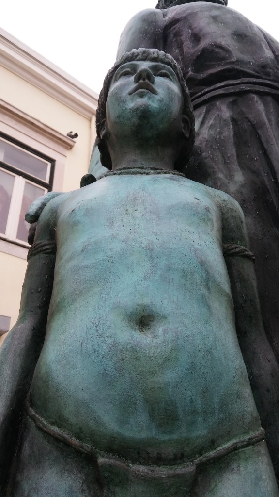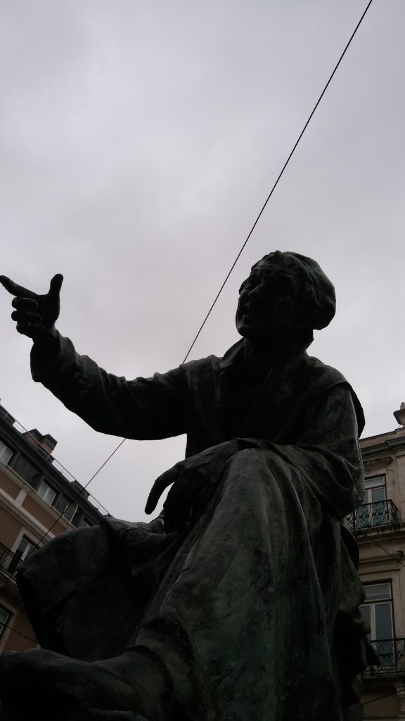 Lissabon ist steil. Ich schaue mir eine random Kirche an, die wirklich beeindruckend ist, finde gruslige Bronzedenkmäler und lande schließlich in einem Viertel, das in etwa einem portugiesischen Kreuzberg entspricht, wo ich Spaghetti-Pesto und ein Glas Weißwein genieße.
