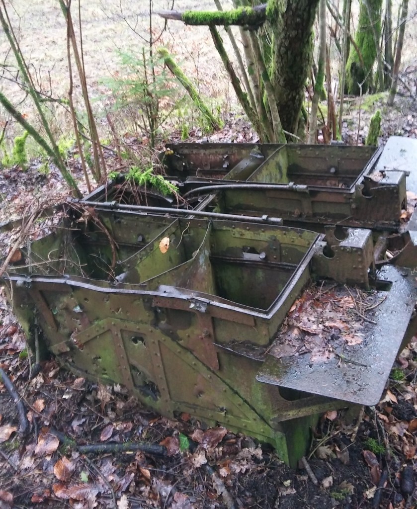 Um so überraschender war das Auftauchen des Kutschenkastens an einem nebligen Januarmorgen direkt neben einem überwachsenen Waldweg unter dem Südhang des Pfefferrückens. Natürlich sind alle Holzteile längst vermodert, welchen genauen Zweck das Gefährt hatte, dazu bin ich zu wenig Militärkutschenkenner. Eventuell verweisen die tiefen Transportkästen auf Munition ..? Hier beginnt die Spekulation, der Zwang zum Narrativ. Wie strandete das Gefährt auf dem Schlachtfeld, noch zudem auf einem der schwierigsten Gelände des Ersten Weltkriegs? Erhielt der Wagen einen Treffer, brach eine Achse, verendeten die Zugtiere? Kam die Mannschaft davon? Versuchten sie noch, die Pferde auszuschirren, erschossen sie hastig die verletzten Tiere um dann zu fliehen oder schallte das entnervende Brüllen der langsam sterbenden Pferde noch stundenlang durch die Schlucht? Oder blieb der Wagen an einem ruhigen Tag 1918 einfach im berüchtigten Schlamm von Verdun stecken und wurde aufgegeben, ganz undramatisch?