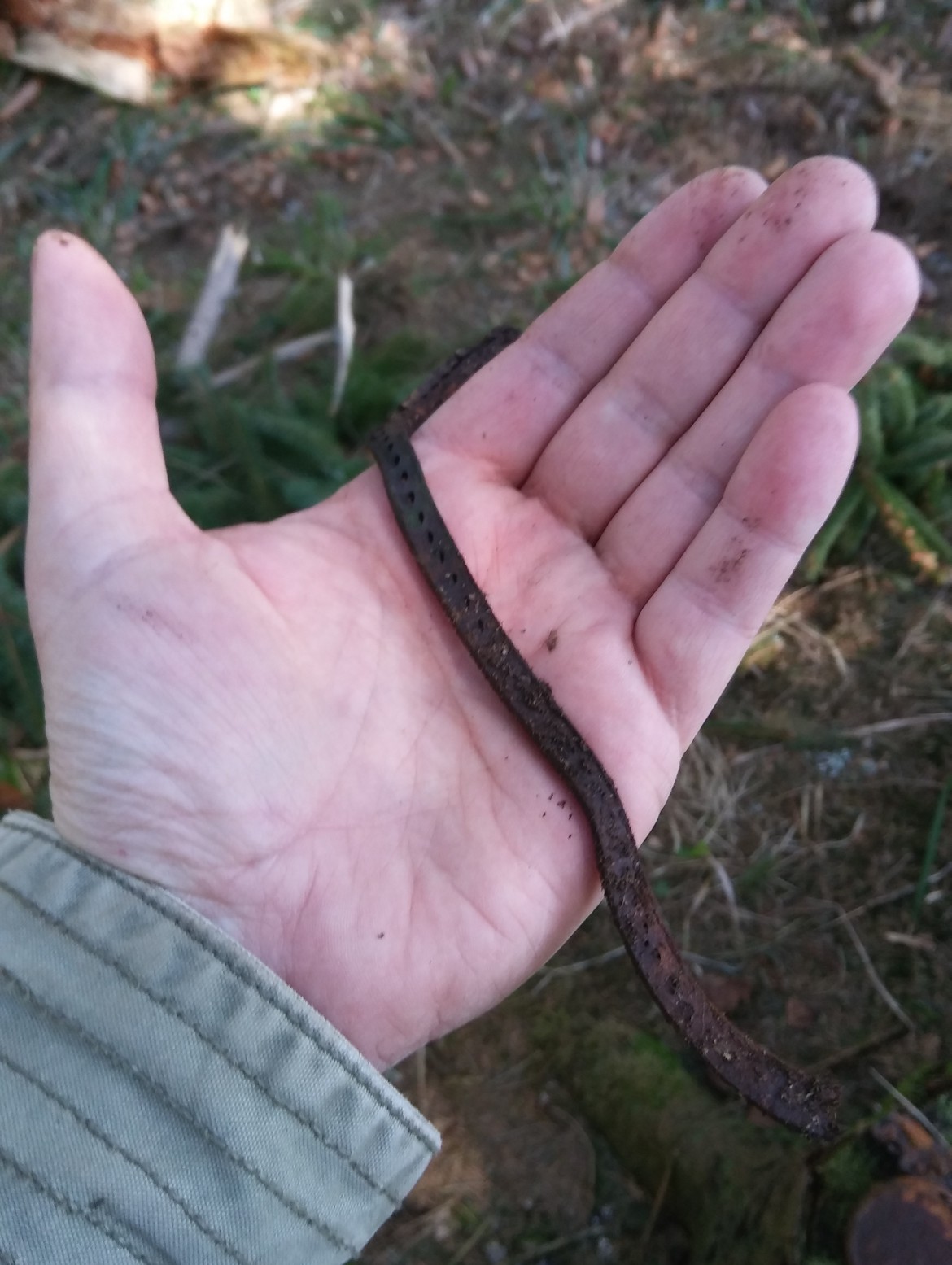 Auch Helme sind selten. Neben dem erwähnten Schrottwert taugen sie wunderbar als Trophäe und Kaminschmuck. In vielen Dörfern der Region zieren deutsche und französische Helme seit Jahrzehnten die Scheunen. Gefunden habe ich bisher nur dieses kleine Stückchen.