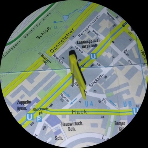 Aber genug davon, wir haben den Tiefpunkt des Kessels durchwatet, ab jetzt steigen die Straßen wieder an, es geht bergauf. Zwar bereits ein wenig unsicher im Tritt, aber aufwärts. Es wird ruhiger, während wir an den U-Schienen entlang durchs nächtliche S treten, den Erwin-Schöttle-Platz bereits im Blick, und wir ahnen: Wir können erst mal ein wenig Frischluft pumpen, bis etwas hier am Weg liegt.