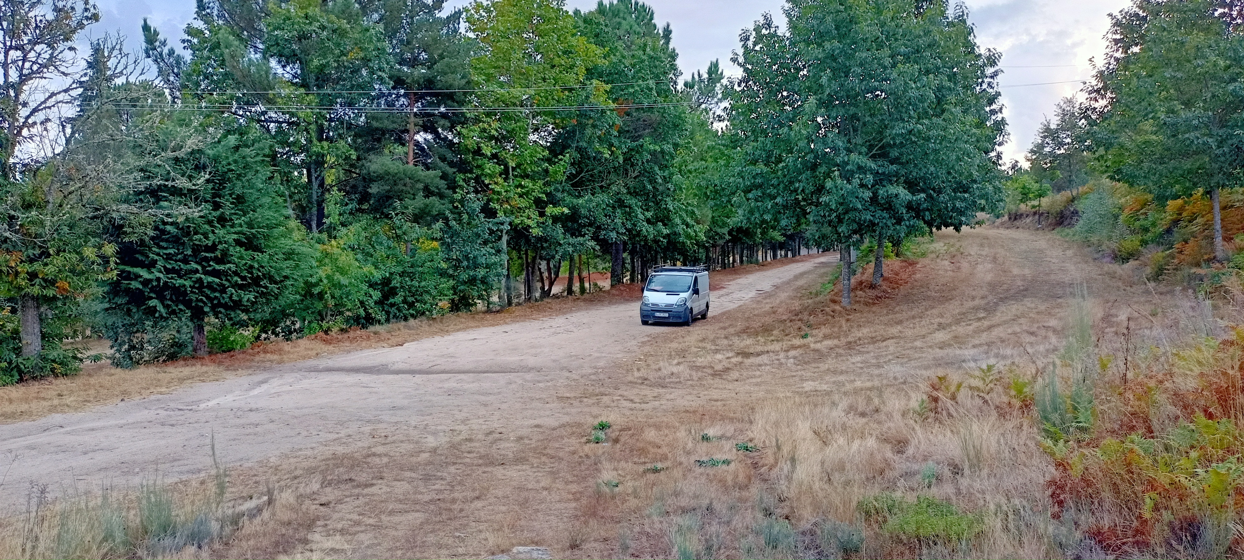 Danach bin ich fertig mit Porto, ich fahre zu Gaspard und düse raus, will schon mal einen Teil der Strecke bis nach Leon zurücklegen. Mein Ziel: Heute Nacht am Arsch der Welt! Jetzt sitze ich mutterseelenalein in den stockdunklen Bergen an der Grenze. Spanien ist 3,5 Kilometer entfernt, ich könnte hinlaufen. Der riesige Parkplatz gehört anscheinend zu einem Kloster, das einen Kilometer weiter hinter dem nächsten Hügel liegt. Hier ist gar niemand, außer ich hier in Gaspard.