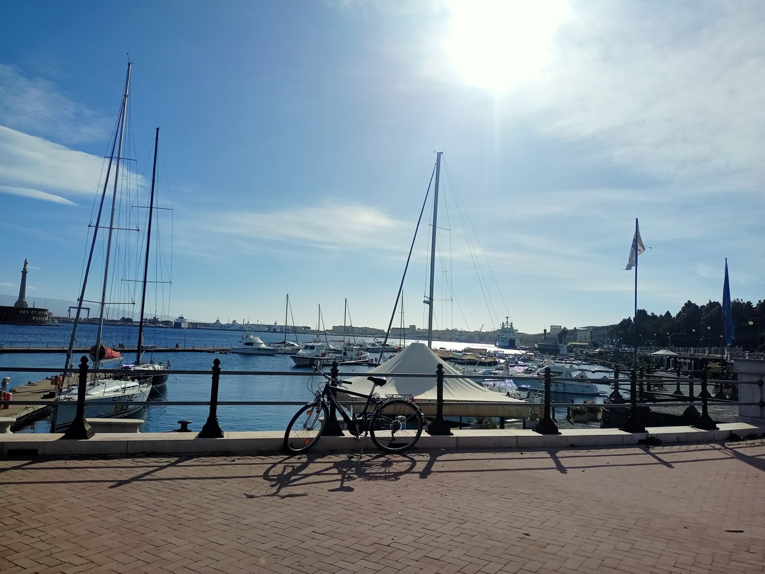 In Messina Fahrrad-Fahren ist wie Rauchen an der Tankstelle: Wahrscheinlich passiert nix. Aber die Angst ist immer dabei. Und Messina selbst ist nicht weiter der Rede wert, jedenfalls habe ich bei zwei Stunden herumradeln nix entdeckt, was es in den Blog schaffen könnte. Während ich noch in Neapel das Autofahren im Stadtchaos vermieden habe, gab mir Sizilien anschließend den Crashkurs – allerdings ohne Crash, nur die Felgen hatten ein- oder zweimal Randsteinkontakt. Und während mir die erste Stunde das lustige Chaos in gewisser Weise fahrerischen Spaß bereitete, war ich am Schluss ziemlich ausgelaugt.