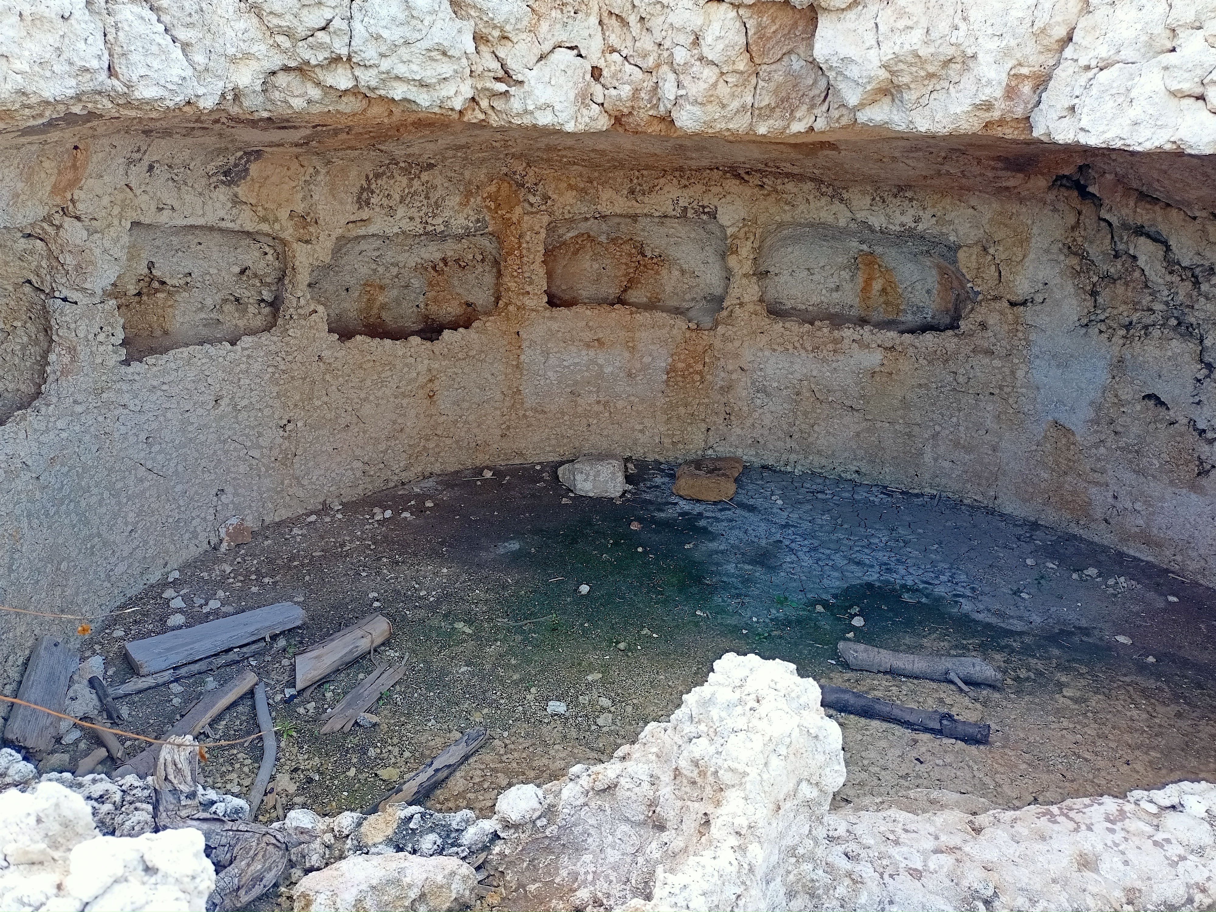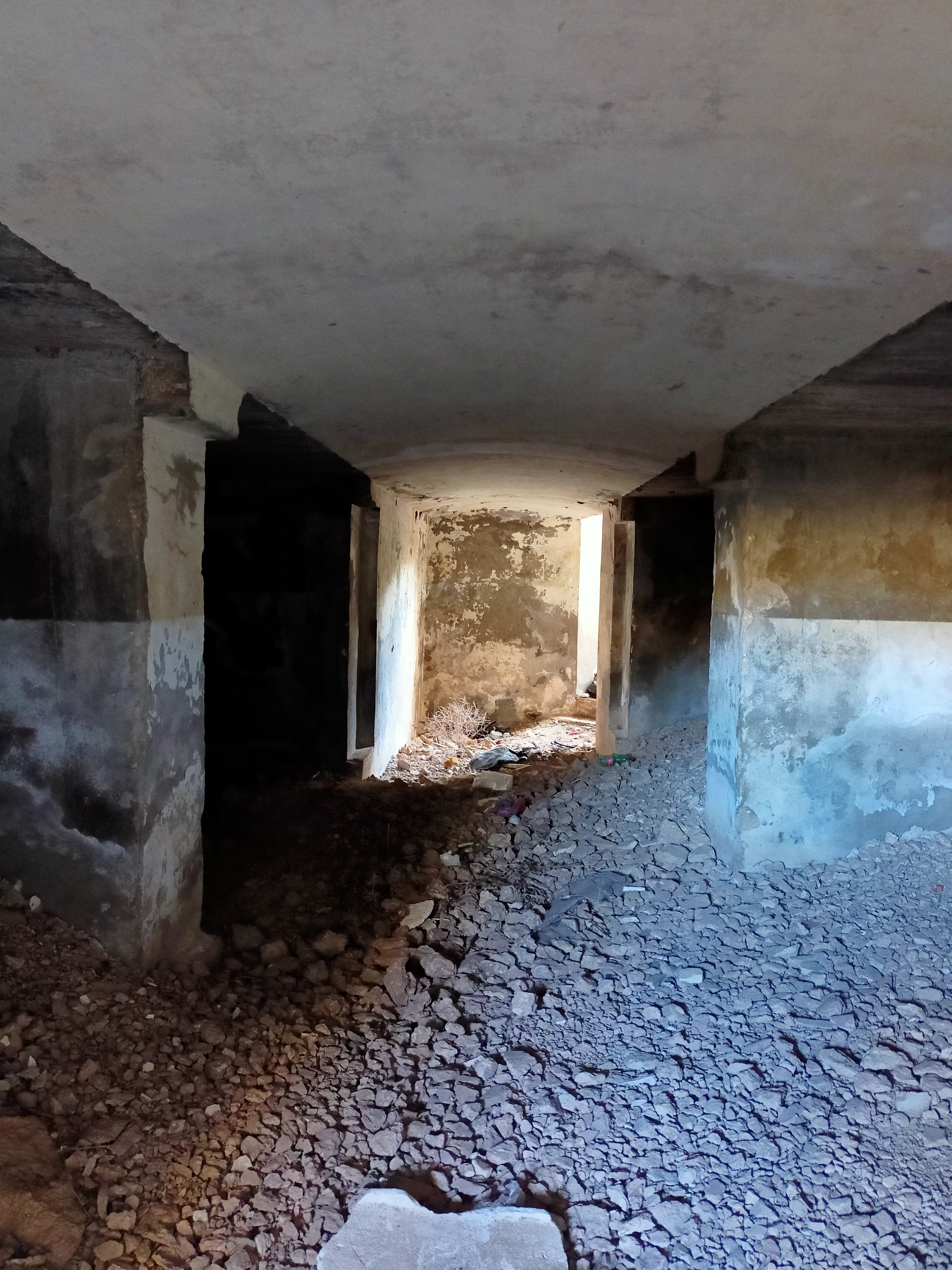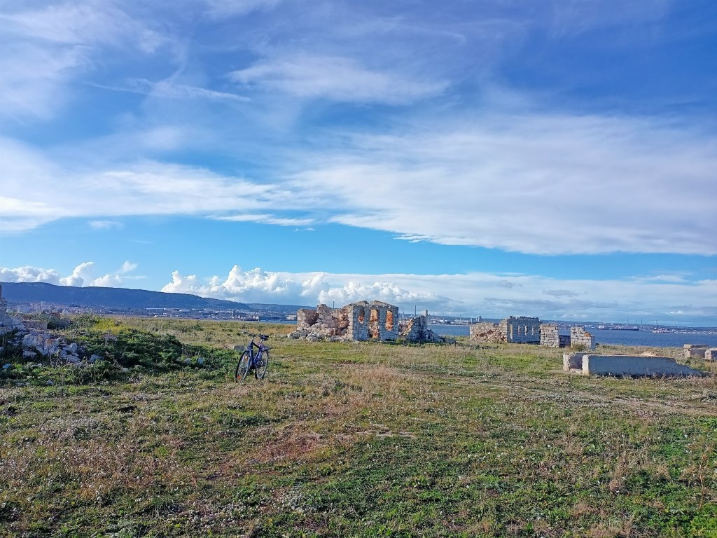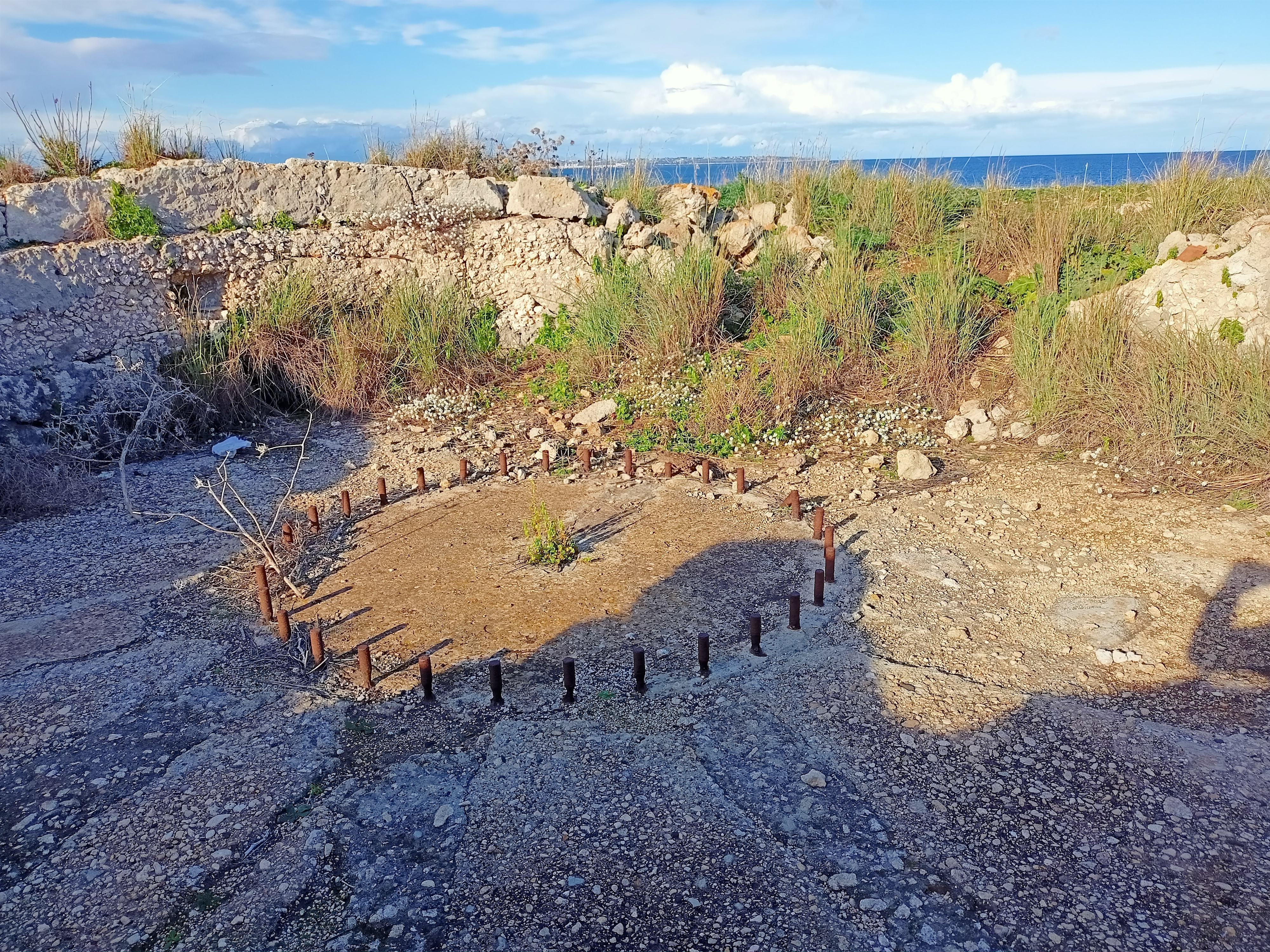 Die Baracken und Gebäude sind ziemlich verfallen, wohl auch wegen Angriffen im Vorfeld der Invasion Siziliens 1943, dafür die unterirdischen Geschützkasematten sehr gut erhalten. Ein wenig vermüllt sind sie (natürlich), und die Hundeknochen und Schrotpatronenhülsen da unten stehen hoffentlich in keinem Zusammenhang miteinander. Oder erschießt in den Löchern jemand regelmäßig Streuner?