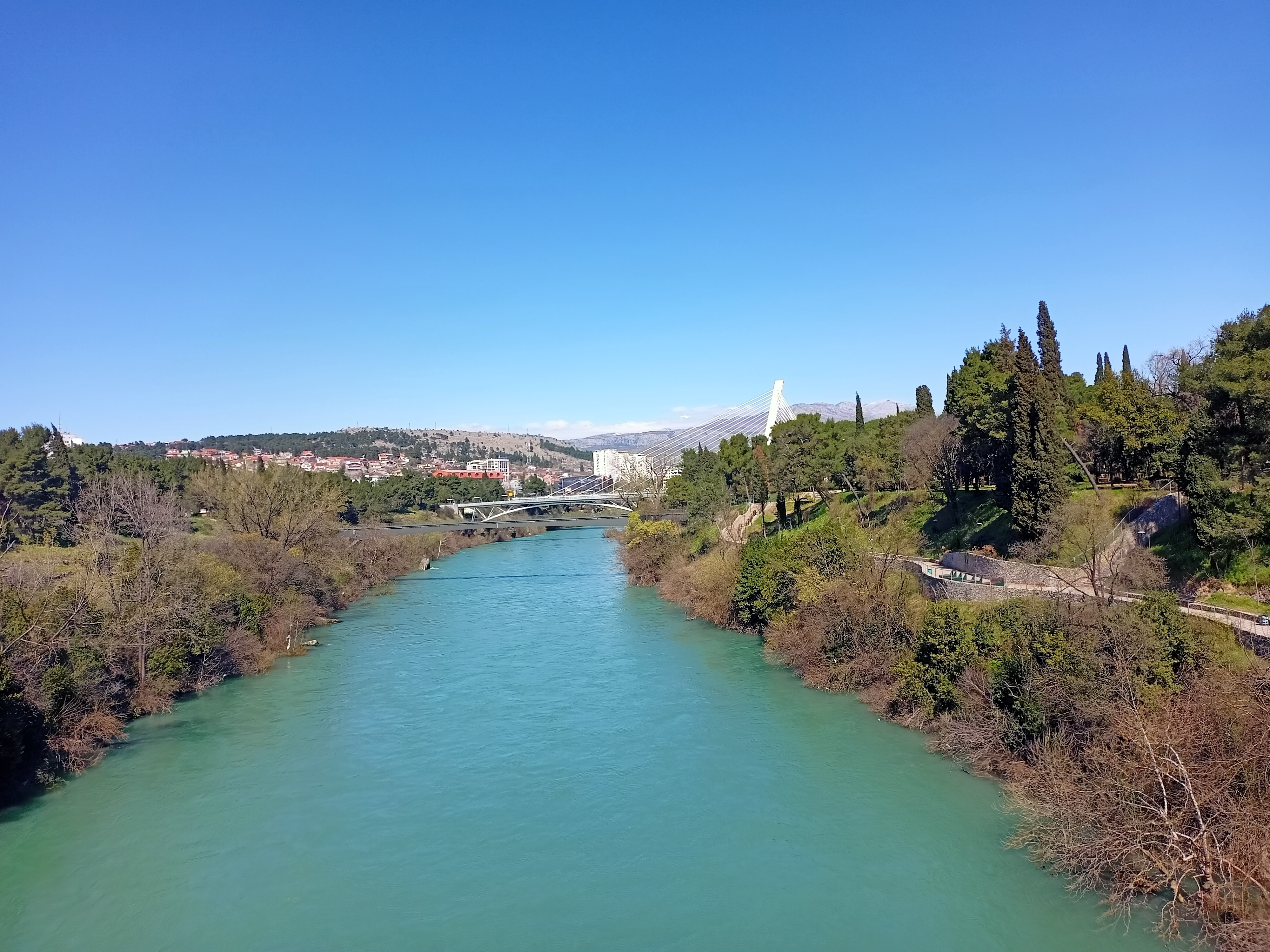 Dann bin ich auch schon in Podgorica, der Hauptstadt. Man muss sagen: sie ist ziemlich reizlos. Dafür kann Podgorica wenig, die Allierten haben im Zweiten Weltkrieg die Stadt quasi komplett zerbombt, weil sie ein deutscher Knotenpunkt auf dem Balkan war. Tito benannte die Stadt nach dem Krieg kurzerhand in „Titograd“ um, machte sie zur Chefsache, und ließ sozialistische Blöcke en gros hochziehen. Man muss sagen, die Podgoricer geben sich Mühe. Alle Blocks sind hell, sauber und wirken frisch gestrichen. Trotzdem sind die Sehenswürdigkeiten merkwürdig. Top Dog ist die „Millenium Bridge“ über das Flusstal, zugegebenermaßen eine stylische Hängebrücke. Die orthodoxe Kathedrale ist weird, sie liegt quasi in einer riesigen, ungestalteten Brachfläche im Westen der Stadt. Innendrin sehr prachtvoll. Der berühmte Uhrenturm aus osmanischer Zeit ist einfach nur ein alter, viereckier Turm, der in der Stadtmauer von Ravenburg oder Marbach nicht groß beachtet werden würde. Das Preisniveau hier ist allerdings sensationel niedrig. Man zahlt mit Euro.