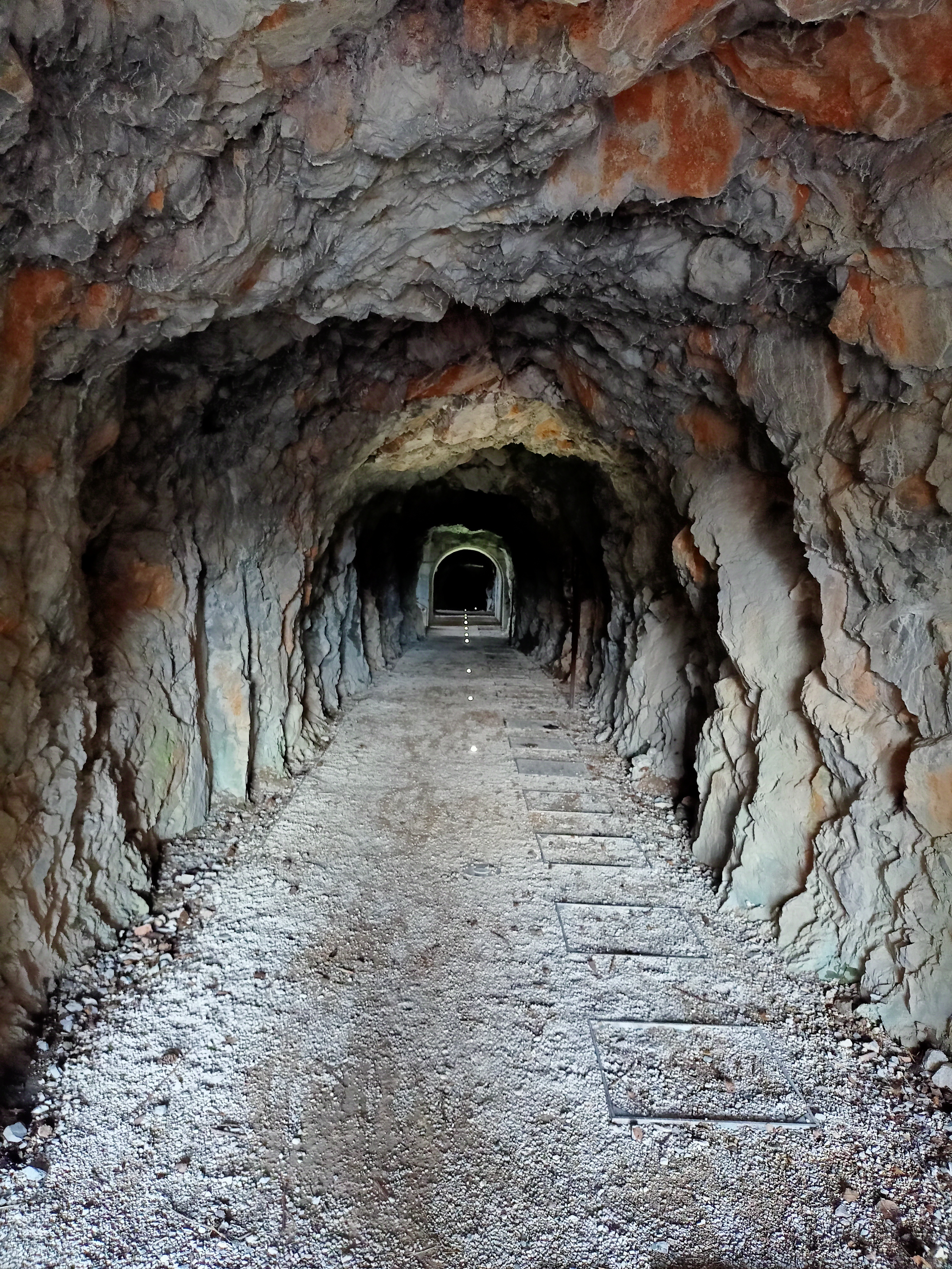 Es ist ein super Ausflug. Die italienische Ersatzlinie ist grandios erhalten, aufwendig restauriert und begehbar. Und die Galleria entpuppt sich als kostenloses Mini-Museum. Schon als Bauwerk beeindruckend: Die Italiener haben eine verdeckte Feuerstellung in den Berg getrieben für sechs schwere Geschütze. Kasematten, riesige Gewölbe, Mannschaftsräume. Das ganze ist dazuhin noch didaktisiert und mit eher künstlerisch angehauchten Installationen versehen, die dennoch Zeugnisse der hier stationierten Soldaten verarbeiten. Es ist grandios, um da einfach zur frühen Morgenstunde hineinzustolpern.