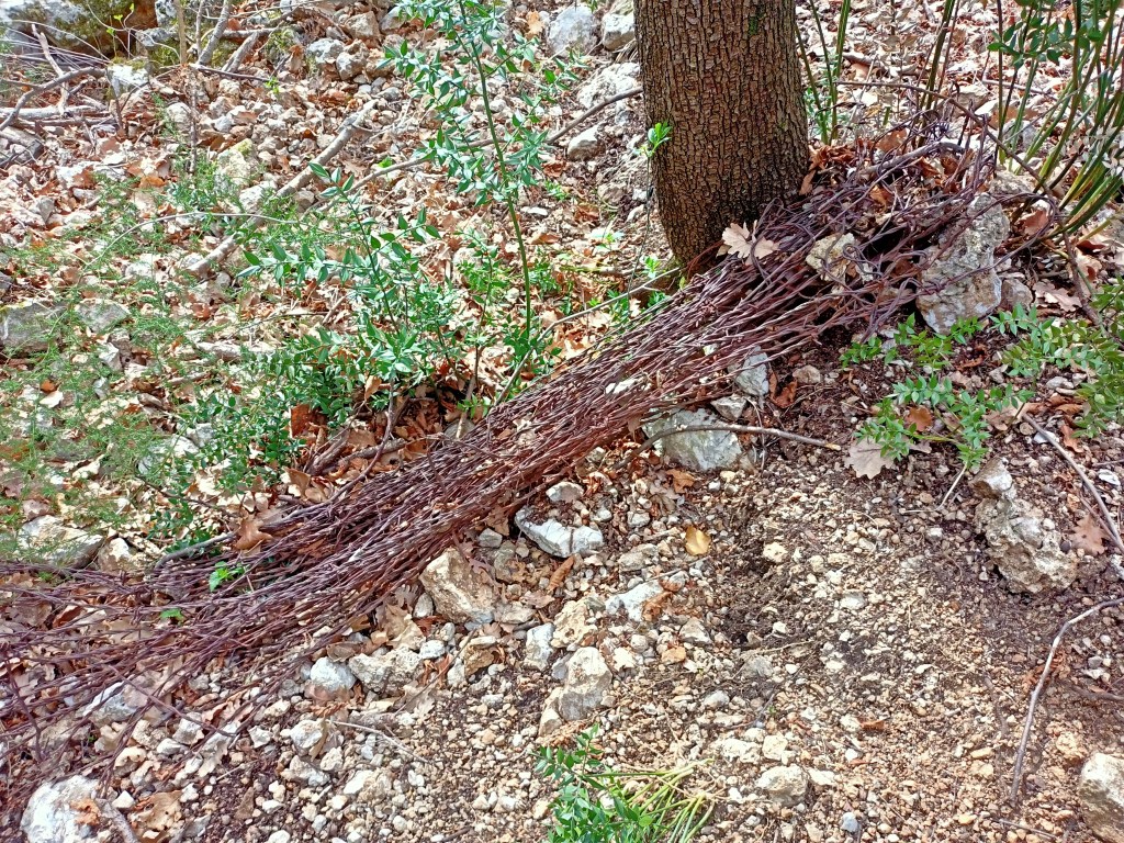 Fast wäre ich dem unscheinbaren Schild „Spitalo“ in ein Seitental nicht gefolgt aber nur einhundert Meter, dann bin ich ganz zu Hause. Na ja, doch nicht, es ist anders als Verdun. Dutzende Stolleneingänge durchbrechen die Felswand. Die Italiener haben die Ecke durchlöchert wie einen Schweizer Käse, weil das enge Tal relativ beschussicher war. Gallerien voller Zeug zwischen den Steinen. Artefakte überall, Gasmaskenfilter, Flaschenscherben, Patronen, ein paar Batterien, Ledersohlen … das übliche Sammelsurium, das zurückgelassen wurde. Nur diesmal Italienisch.