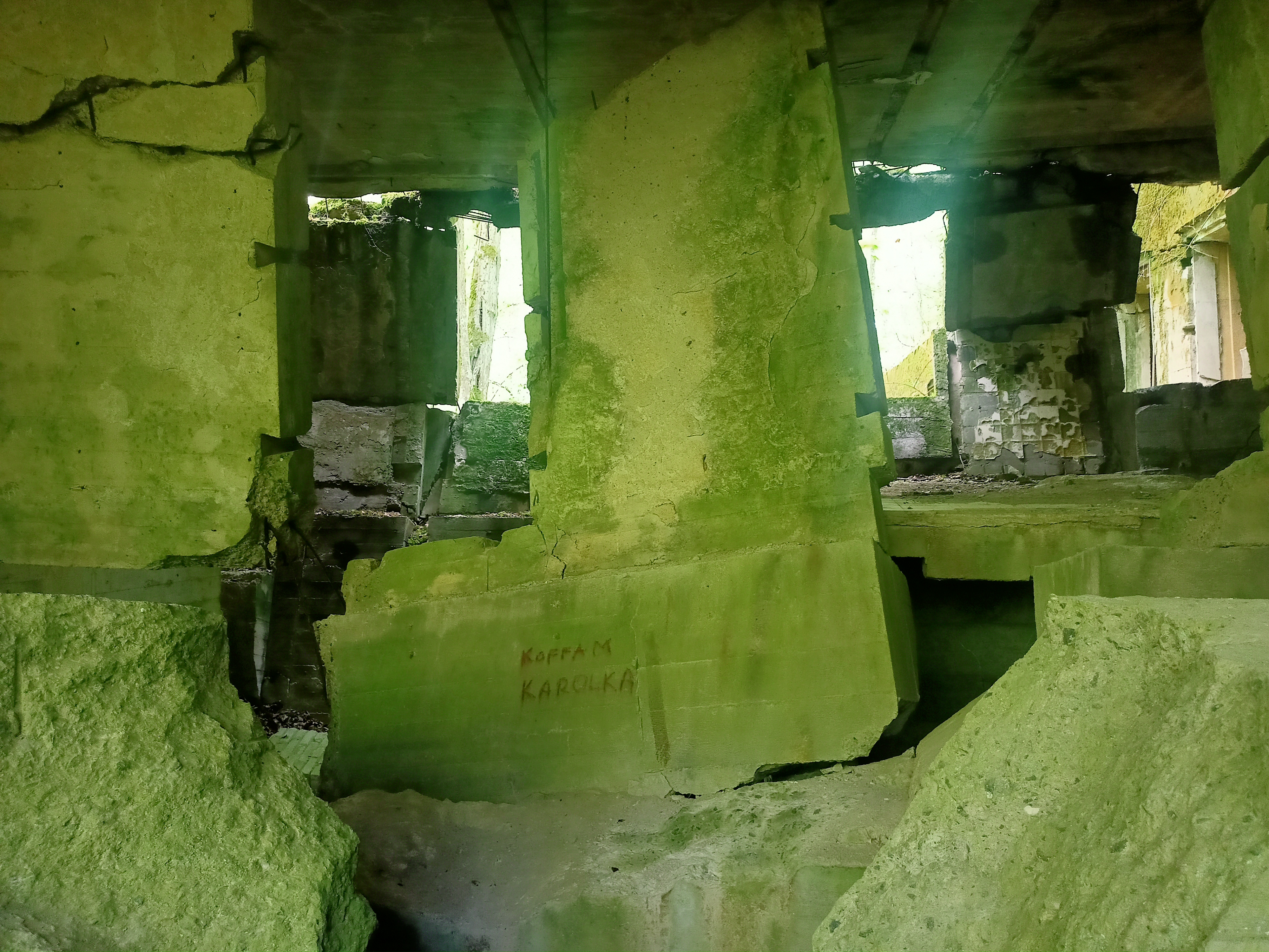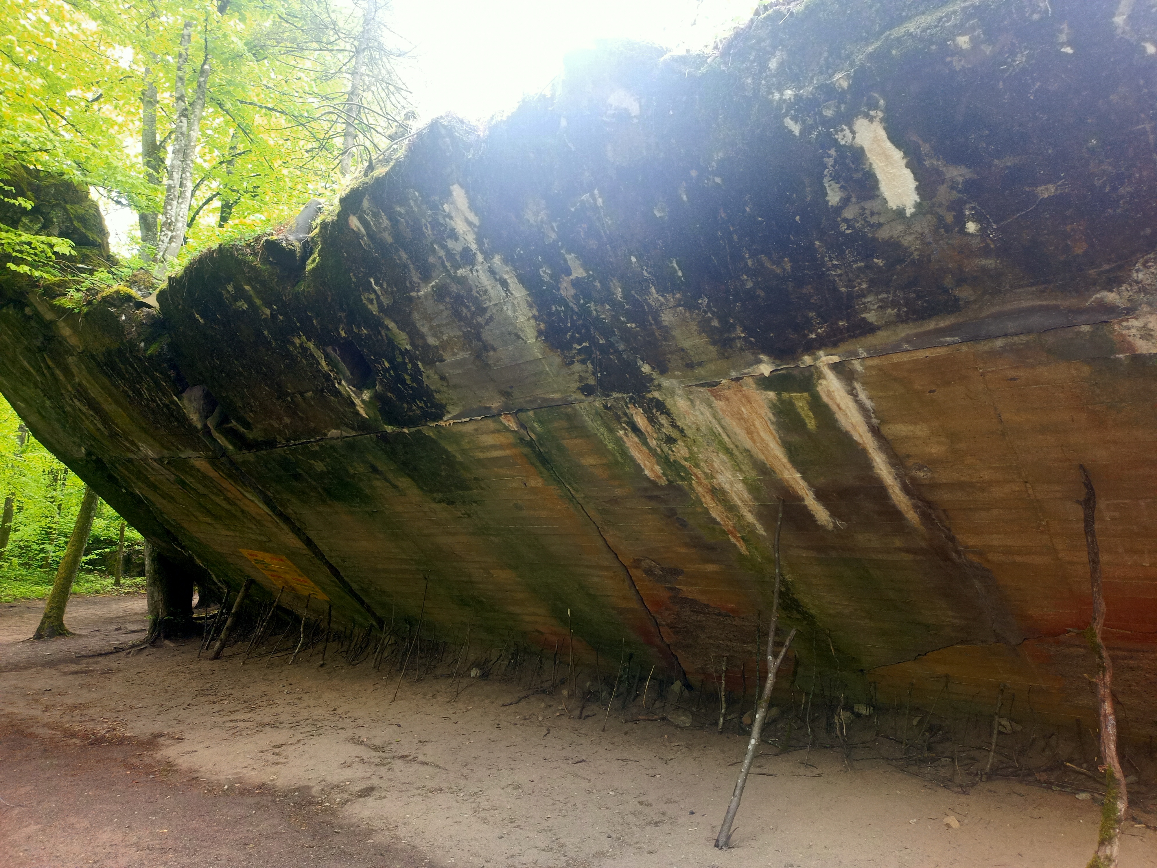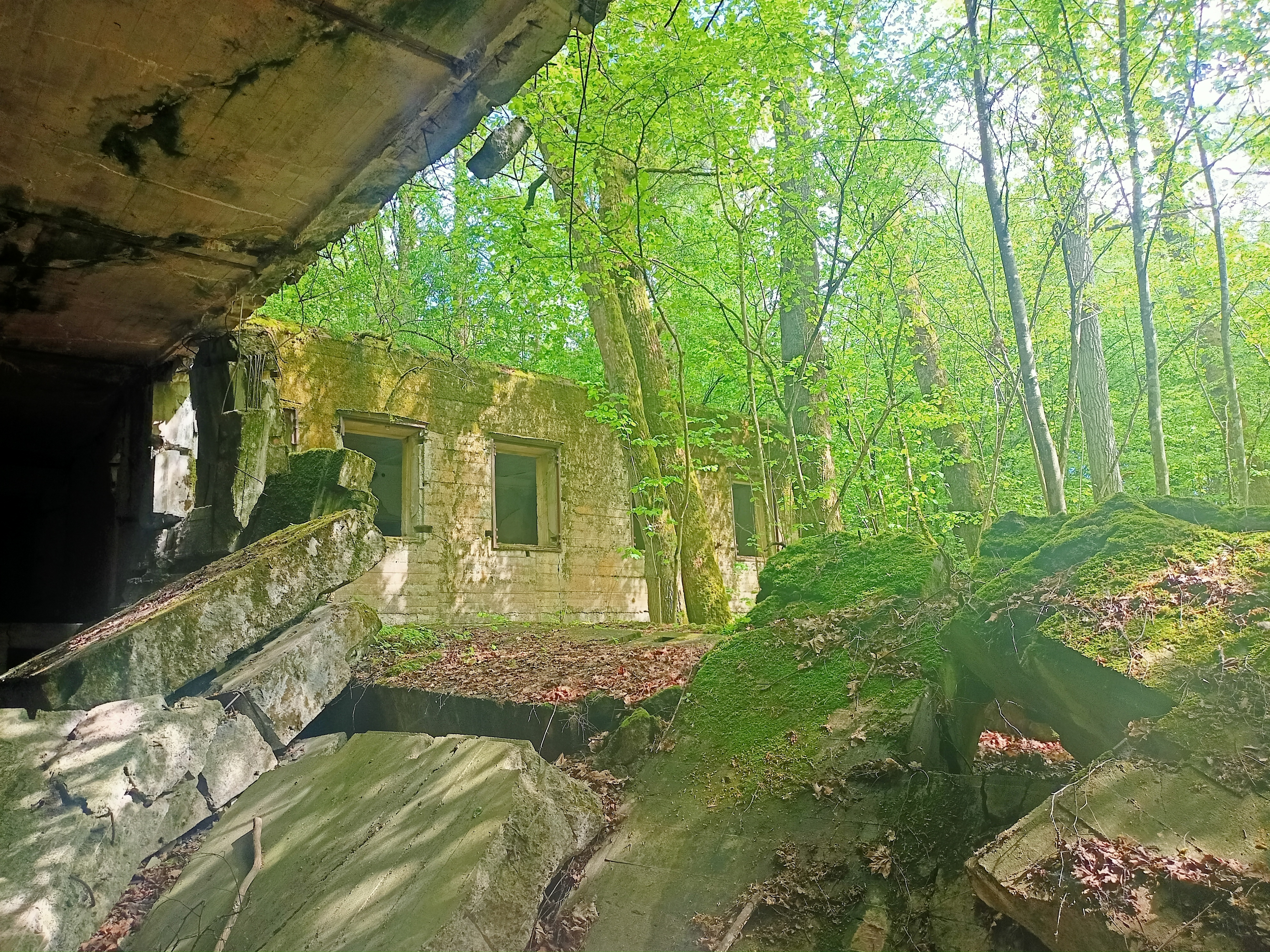 Das schöne an der Wolfsschanze wiederrum ist, dass es eine „Zone 1“ gibt, mit den wichtigsten und größten Bunkern bekannter NS-Bonzen. Die ist kostenpflichtig und museal aufgearbeitet und wer sich mal richtig gruseln will, der googlet jetzt schnell „Göring- Wolfsschanze – Skelettfunde.“ Es gibt aber auch eine „Zone 2“ südlich der Bahnlinie, in der so ein bisschen die Nebengebäude im Wald vor sich hin bröckeln. Auch die Nebengebäude sind durchaus gewaltig. Und auch sehr zersprengt. Natürlich steht an den Eingängen viersprachig „Betreten verboten“, aber da ist halt kaum auch jemand, der kucken würde …