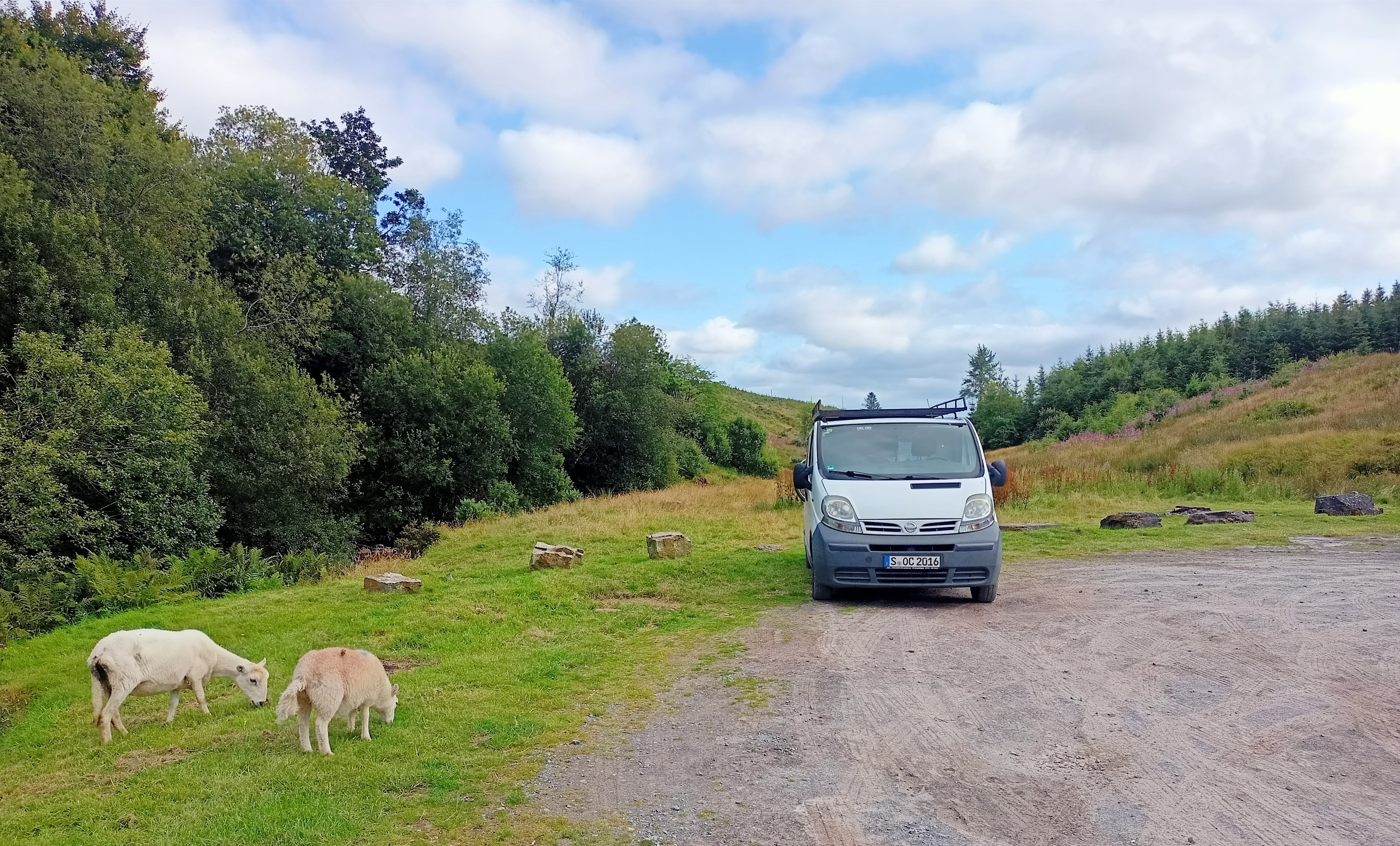 Ach Leute, was für ein ereignisreicher Tag. England ist erreicht, ich lebe noch und sitze im Wald. Ich bin jetzt von einem anderen Camper neidisch ob meines ebenen Stellplatzes beäugt worden und einmal wurden wir von Locals angehupt. Camperglück.