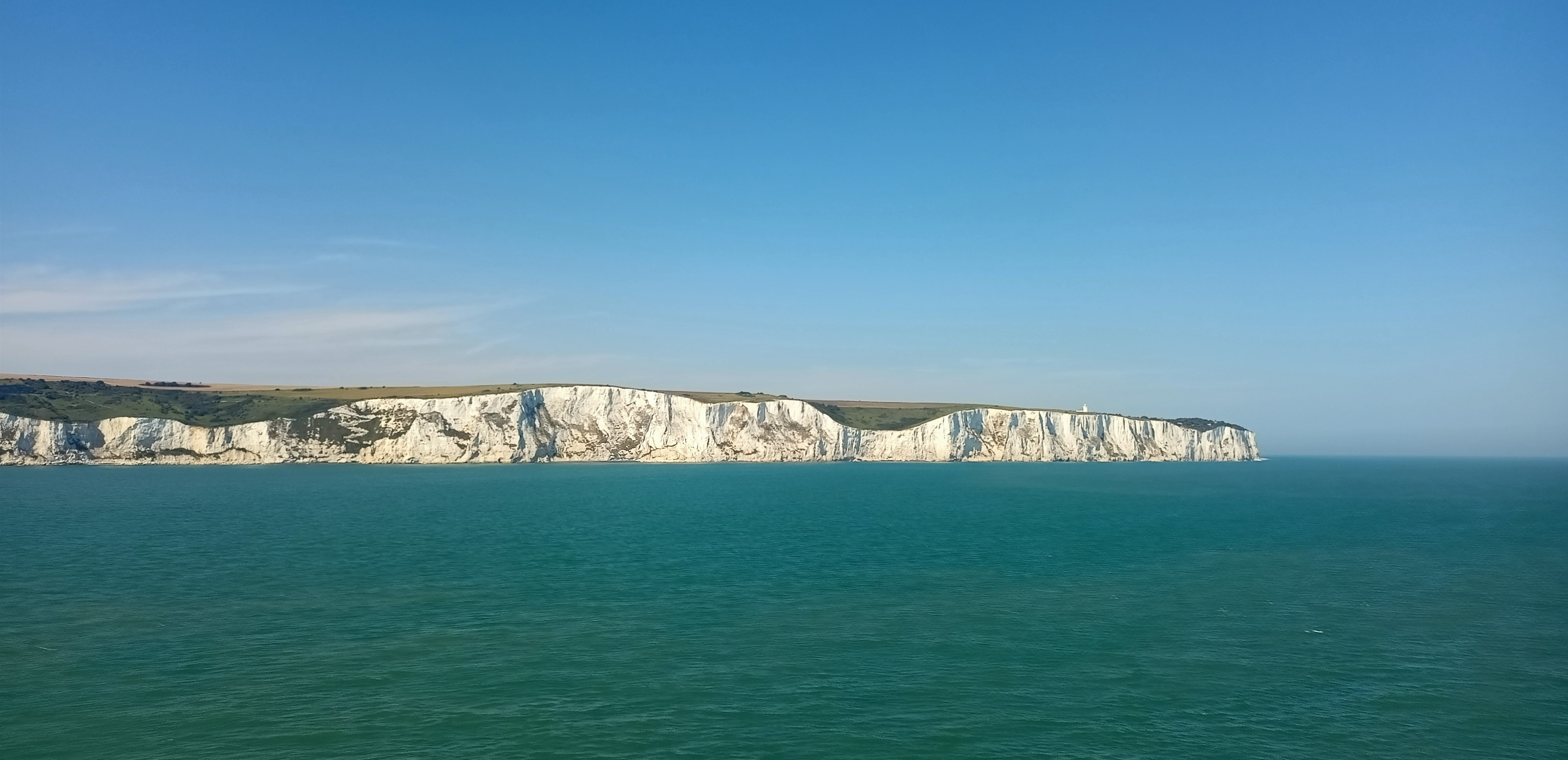 Die Isles of Inismore ist schon etwas in die Jahre gekommen und weint deutliche Rosttränen. Jede zweite Toilette ist gesperrt und die Wechselstube bescheißt dich locker um 5 Pfund pro hundert eingewechselter Euro. Das WiFi ist free aber unzuverlässig und alle Fenster sind wie immer nahezu blind. Die einzige Fähre mit durchsichtigen Fenstern, die ich kennengelernt habe, war eine finnische Fähre. Aber meine Linie fuhr zuverlässig. Das Wetter auf dem Ärmelkanal war dunstig grau, der Wind pfiff brutal auf dem Oberdeck und die white Cliffs of Dover schälten sich eher gelangweilt aus dem Dunst. Trotzdem ganz beeindruckend.