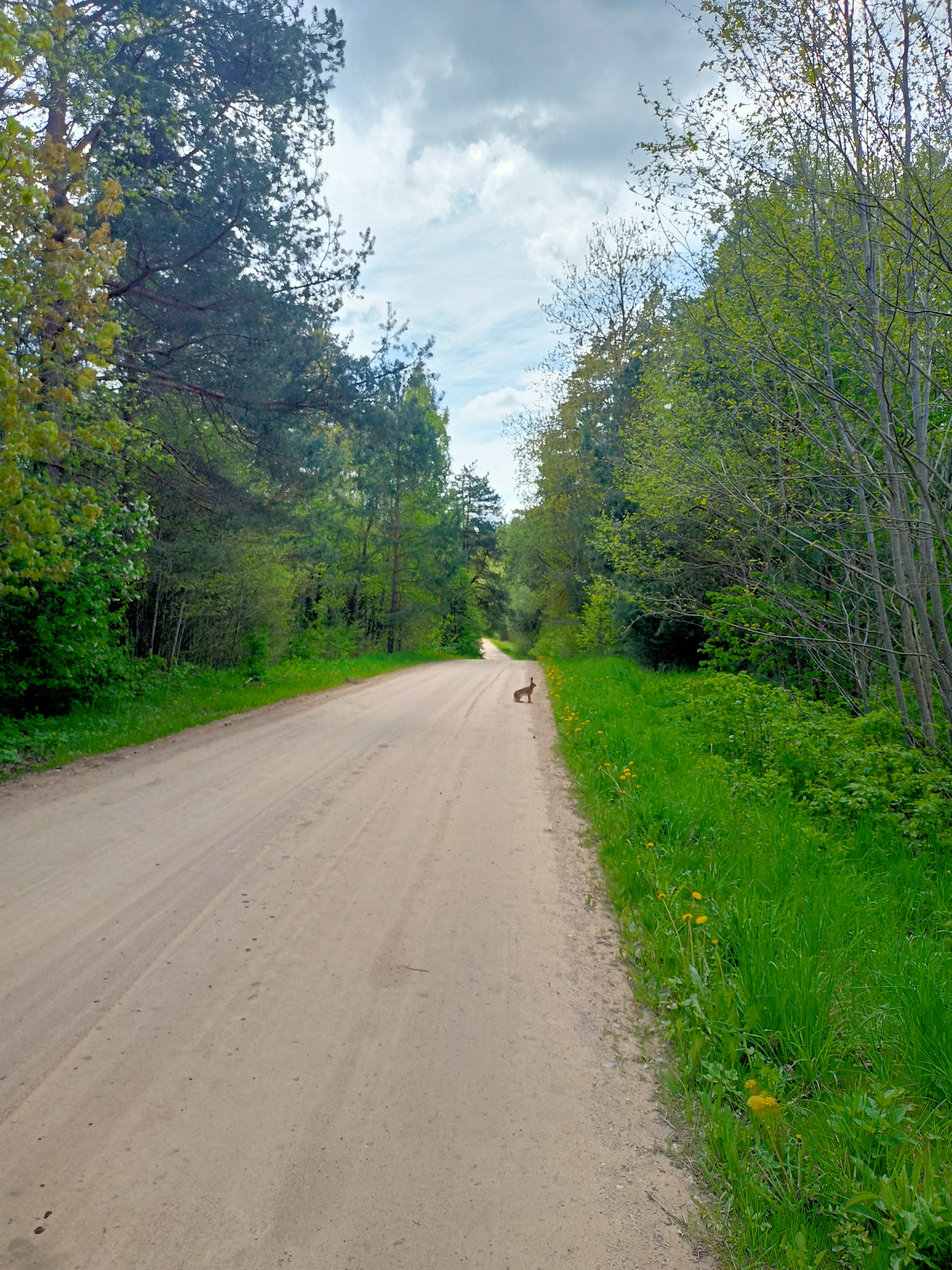 Morgens war Lettland noch bewölkt, aber trocken. Über die Grenze war ich nahezu unmerklich. Nur ein schwarz-weiß gestrichener Pfahl erinnert den europäischen Reisenden daran, dass ab jetzt Litauen ist. Was erst mal keinen großen Unterschied macht: Riesige Wälder, Hügel, Wiesen, Störche noch und nöcher. Allerdings ist spürbar, dass ich weiter südlich angelangt bin, Laubbäume werden häufiger und der die Natur steckt wesentlich tiefer im Frühling als um Tallinn.